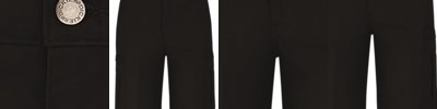 - Folder set waistband, 1.5". Stretch interlining for expanded comfort waist