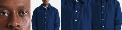 • Metal snap closure at collar stand and welt pockets